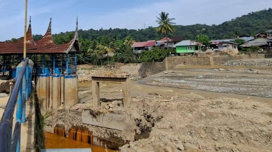 Dampak bencana ini tak berhenti pada urusan transportasi. Kerusakan parah juga menghantam sistem irigasi di sepanjang aliran sungai. Bendungan Gunung Nago yang selama ini menjadi “jantung” bagi lahan pertanian warga kini lumpuh total.