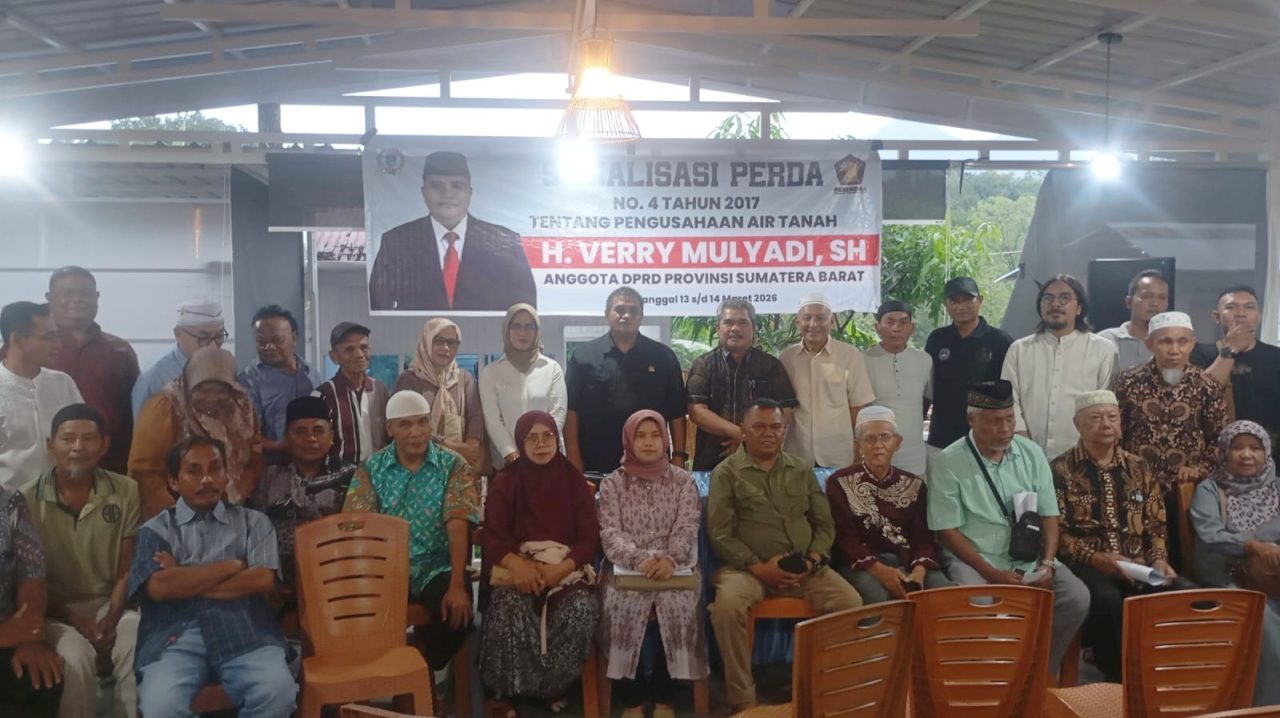 Sakato.co.id – Sekretaris Komisi IV DPRD Sumbar Verry Mulyadi menggelar sosialisasi Perda Nomor 4 Tahun 2017 tentang Pengusahaan Air Tanah kepada masyarakat Lubuk Kilangan di Pondok Putih Padayo Agro Lubuk Kilangan, pada Sabtu (14/3/2026).