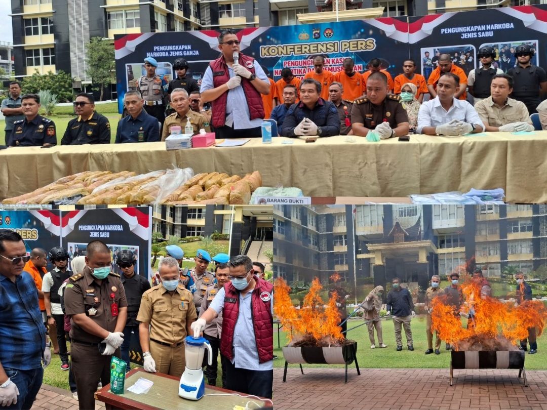 Jaringan Antarprovinsi Dibongkar, Polda Sumbar Musnahkan Puluhan Kilogram Ganja dan Sabu