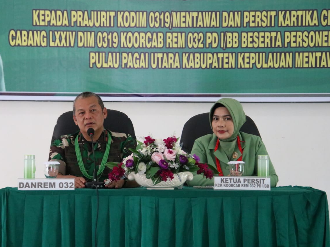 Danrem 032/Wbr didampingi Ketua Persit KCK Koorcab Rem 032 PD I/BB Ny. Evidhayani Obersyl tersebut disambut hangat oleh Pemda Kabupaten Mentawai Dandim 0319/Mentawai dan seluruh prajurit dan Persit Kodim 0319/Mentawai Makodim 0319/Mentawai.